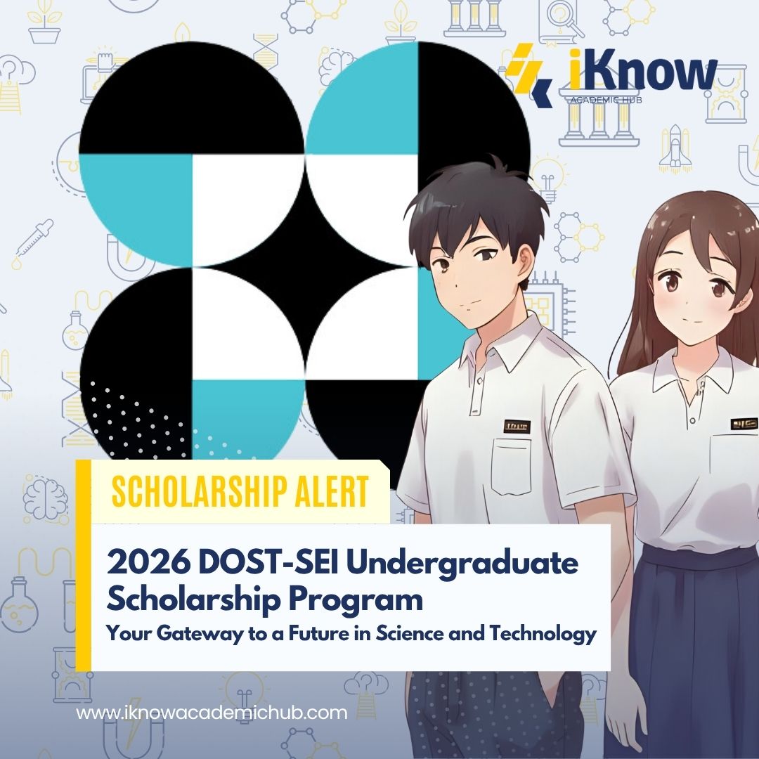 Wed Oct 08 2025If you’ve always dreamed of becoming a scientist, engineer, or innovator, this is your moment. The Department of Science and Technology – Science Education Institute (DOST-SEI) has officially opened applications for the 2026 Undergraduate Scholarship Program, a prestigious opportunity for Filipino students who aspire to build meaningful careers in Science, Technology, Engineering, and Mathematics (STEM). At iKnow Academic Hub, we believe that nurturing young minds in STEM is vital to shaping the nation’s progress — and the DOST-SEI scholarship is one of the best ways to start that journey. What Is the DOST-SEI Undergraduate Scholarship? The S&T Undergraduate Scholarships Program aims to encourage talented Filipino youth to pursue lifelong productive careers in science and technology. Through this program, the government ensures a steady pool of qualified S&T professionals ready to drive innovation and contribute to national development. Becoming a DOST scholar means more than financial aid — it represents academic excellence, leadership, and service to the country. Scholars enjoy: Free tuition and school fees Monthly stipend and book allowance Thesis and graduation support Additional allowances for transportation and living expenses With these benefits, students can focus on excelling in their studies and developing research that shapes a better future for the Philippines. List of Requirements Applicants must prepare and submit the following: Certificate of Good Moral Character Certificate of Good Health Principal’s Certification: STEM strand: Graduating or graduated Grade 12 student (Form E1) Non-STEM strand: Belong to the top 5% of the class (Form E2) Homeschool: Form E3 ALS: Form E4 Certificate of Residency Parent’s Certification (no pending immigration application abroad) DOST-SEI Scholarship Examination/Award Record Applicant’s Certification of No Post-Secondary Units Signed Declaration of Applicant and Parent/Guardian Recent passport-size photo (4.5 cm × 3.5 cm) Birth Certificate Proof of Income (any of the following): 2024 Income Tax Return (ITR) BIR Form 1701 Employment Contract (for OFWs) Certificate of Indigency or Certificate of Employment with Compensation Proof of Pension (if applicable) Notarized Affidavit of Guardianship (if applicable) Marriage Certificate (for married applicants) Important Dates to Remember Activity Schedule Announcement of Scholarship & Downloading of Forms October 6, 2025 Start of Online Application October 20, 2025 Deadline for Application & Uploading of Requirements November 21, 2025 Schedule of Qualifying Examination February 21–22, 2026 For more details and access to downloadable forms, visit https://science-scholarships.ph. How to Apply Visit the official DOST-SEI website: https://science-scholarships.ph Download and accomplish all required forms. Prepare digital copies of your documents. Submit your online application starting October 20, 2025. Ensure all requirements are uploaded on or before November 21, 2025. Final Tip: Prepare Early with iKnow Academic Hub The DOST-SEI Qualifying Examination is highly competitive, covering topics in Science, Math, and English that test your reasoning, problem-solving, and analytical skills. At iKnow Academic Hub, our scholarship and college entrance exam review programs are designed to help students: Strengthen their understanding of core concepts Sharpen test-taking strategies Build the confidence needed to excel under pressure Start your preparation early — because the right review can make all the difference. At iKnow Academic Hub, we believe smarter preparation builds stronger futures.Join our programs today and get the guidance you need to become the next DOST-SEI scholar!