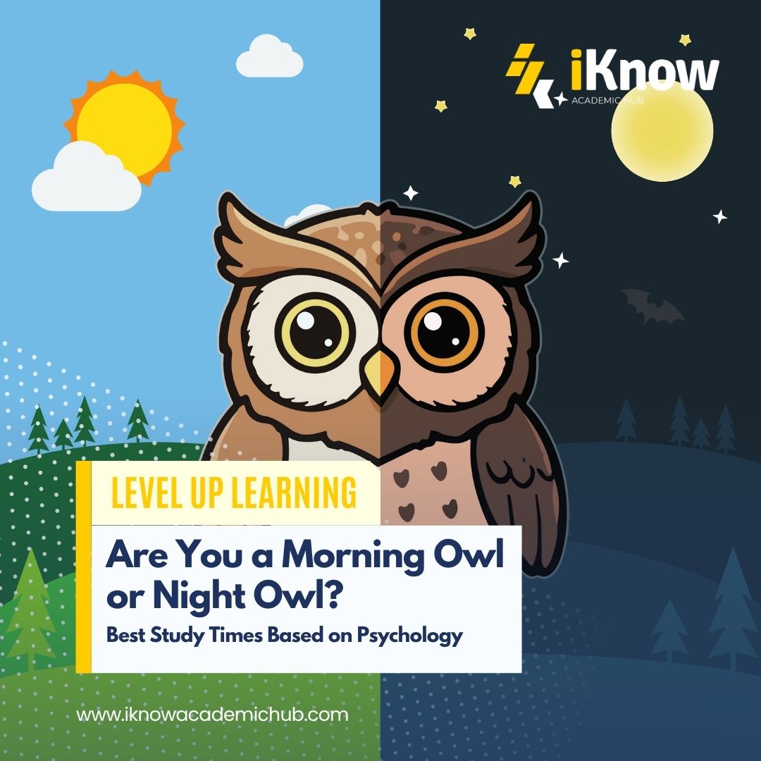 Mon Oct 13 2025Have you ever noticed that some students thrive at 6 a.m., while others can’t focus until midnight? It’s not just a matter of preference — it’s biology. According to research on circadian rhythms, our internal body clock influences when we feel most alert, focused, and creative throughout the day . Understanding this can help you study smarter, not harder. At iKnow Academic Hub, we believe effective studying starts with knowing yourself — including when your brain performs best. Whether you’re an early riser or a night owl, finding your ideal rhythm can make every study session more productive and less stressful. The Science Behind Study Productivity Your circadian rhythm is a 24-hour biological cycle that regulates sleep, alertness, and body temperature. It’s controlled by the brain’s suprachiasmatic nucleus, which responds to light and darkness cues . Morning types (“larks”) feel energized early in the day and prefer to complete mentally demanding tasks before noon. Evening types (“owls”) peak in the late afternoon or night, often finding focus and creativity after sunset. A study by the University of Toronto found that morning people tend to experience higher positive emotions and proactive behavior, while night owls often perform better in tasks requiring creative problem-solving . So instead of forcing yourself to study at “ideal” times, align your schedule with your natural energy pattern. If You’re a Morning Owl ☀️ Peak performance time: 6 a.m. – 12 p.m. Why it works: Morning learners benefit from higher alertness, stable focus, and fewer distractions early in the day. Studies show that working memory and concentration are strongest during daylight hours . Ideal routine: 6:00–7:00 a.m.: Light exercise or meditation to activate focus 7:00–9:00 a.m.: Review difficult subjects (Math, Science, Logical Reasoning) 9:00–11:00 a.m.: Take practice tests or mock exams 1:00 p.m. onward: Light review, flashcards, or group discussions Pro tip: If you’re preparing for college entrance exams like the UPCAT or DOST-SEI, morning sessions simulate actual testing conditions — which usually happen before lunch. If You’re a Night Owl 🌙 Peak performance time: 7 p.m. – 1 a.m. Why it works: Night owls often show enhanced creative thinking and problem-solving at night when distractions are minimal and the environment is calmer . Ideal routine: 6:00–7:00 p.m.: Have a light meal and set up a distraction-free study zone 7:00–9:00 p.m.: Study concept-heavy subjects like Chemistry or Literature 9:00–11:00 p.m.: Practice problem-solving or essay writing 11:00 p.m.–12:30 a.m.: Review summaries or watch recorded lectures Pro tip: Balance late-night study sessions with adequate rest. Lack of sleep affects concentration and retention, no matter your body clock. Hybrid Schedule: For Students with Unpredictable Routines Not everyone fits neatly into a single category. Some students’ schedules shift due to school, training, or family obligations. If that’s you, aim for consistency over perfection — set a fixed study time daily, even for short periods. Cognitive psychology research shows that regular routines enhance long-term memory retention and reduce procrastination . Try the Pomodoro method (25 minutes study, 5 minutes break) and track your energy levels throughout the week. Over time, you’ll discover your own “golden hours” — when you learn best. How iKnow Academic Hub Helps You Study Smarter Whether you’re a morning or night learner, iKnow Academic Hub offers flexible review schedules, recorded lessons, and mock tests you can access anytime. Our programs for UPCAT, ACET, DCAT, USTET, and PSHS-NCE are designed to adapt to your pace — because success isn’t about studying more, but studying at the right time. At iKnow Academic Hub, we believe smarter preparation builds stronger futures.Join our review and tutorial programs today and unlock your potential — on your own clock. References [1] American Psychological Association. (2023). Circadian Rhythms and Human Behavior.[2] National Institutes of Health (NIH). (2022). The Body’s Internal Clock: Understanding Circadian Rhythms.[3] University of Toronto. (2014). Morningness, Eveningness, and Positive Affect.[4] Sleep Foundation. (2023). How Your Chronotype Affects Learning and Productivity.[5] Harvard Health Publishing. (2021). Are You a Morning Lark or a Night Owl?[6] McDaniel, M. A. & Butler, A. C. (2011). Spacing Effects in Learning and Memory.