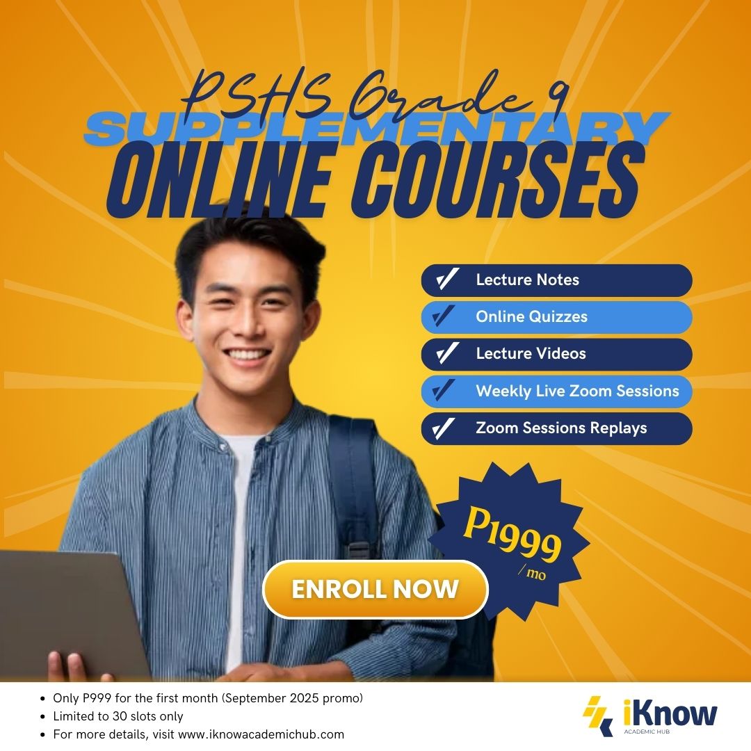 Enroll now in iKnow Academic Hub’s PSHS Grade 9 Supplementary Online Courses and give your child the academic edge to succeed in Pisay.