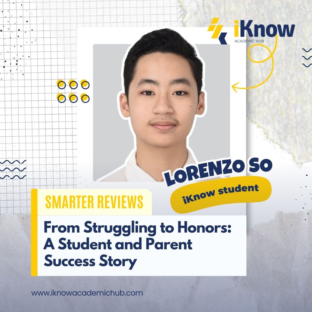 Every success story begins with a struggle. For many Filipino students, Chemistry, Math, and Physics can feel overwhelming, especially in the STEM track. At iKnow Academic Hub, we believe that challenges are not roadblocks but turning points. This student and parent success story shows how the right guidance, smarter study methods, and consistent communication can transform academic performance and confidence. Parents often trust real stories more than promises. This is why we are sharing Lorenzo’s journey, from struggling in Chemistry to achieving Second Honors, and eventually becoming a BS Biology major in Medical Biology passer at De La Salle University. A Student’s Journey: From Confusion to Confidence Struggling in Chemistry Like many STEM students, Lorenzo faced difficulty in Chemistry. Complex formulas, problem solving techniques, and exam pressure made studying overwhelming. This is a common experience among high school students preparing for college entrance tests. But instead of giving up, he sought support through iKnow Academic Hub. Smarter Study Methods That Work What made the difference? At iKnow Academic Hub, lessons are delivered clearly and effectively. Instead of memorizing long and complicated formulas, students are taught: Simpler and smarter techniques Concept based understanding Practical shortcuts for problem solving Strategies applicable to different question types According to Lorenzo: “Instead of focusing on memorizing long and complex formulas, the teachers emphasized simpler and smarter techniques that were easier to remember and applicable to different types of problems.” This approach strengthened his understanding of key concepts. More importantly, it boosted his confidence during exams. Confidence changes everything. When students understand the “why” behind the solution, they perform better not just in quizzes, but in major exams and entrance tests. Preparing for College Entrance Tests with Confidence Another key part of this student success story is college entrance test preparation. Lorenzo shared that iKnow greatly helped him throughout high school, especially in preparing for CETs. The review materials were: Easy to understand Well structured Focused on essential topics Designed specifically for entrance exams The iKnow website also played a big role. Its clean and user friendly design allowed him to access: Mock college entrance exams Educational videos Practical academic tips These resources helped him prepare smarter, not just harder. The result? He became a BS Biology major in Medical Biology passer at De La Salle University. For students aiming for top universities, this proves that the right preparation builds real results. A Parent’s Perspective: Reassurance Through Communication Academic improvement is powerful. But for parents, something else matters just as much: communication and accountability. Lorenzo’s mother, Dr. Mitchie Ong-So, shared their experience. Her son initially joined iKnow Academic Hub because he was struggling in Chemistry. With proper guidance, he was able to improve his performance and turn his grades around. Despite the heavy demands of the STEM track, especially in Math, Physics, and Chemistry, Lorenzo maintained his place in the Second Honors. That is not just improvement. That is transformation. Why Parents Appreciate iKnow Academic Hub What stood out most for Dr. Ong-So was the consistent communication. She shared that Teacher Raymond: Regularly provides updates on her son’s progress Notifies them when extra motivation is needed Keeps parents informed about academic behavior Encourages accountability For parents, this level of guidance is reassuring. It shows that iKnow Academic Hub is not just a tutorial center. It is a partner in a child’s academic journey. When students lose focus or start slacking off, early intervention makes a difference. Clear communication prevents small issues from becoming bigger problems. Why This Student and Parent Success Story Matters This transformation story highlights three key pillars of iKnow Academic Hub: 1. Smarter Reviews Students learn efficient techniques, strong fundamentals, and exam strategies that work. 2. Stronger Accountability Parents receive updates and honest feedback. Students are guided, monitored, and encouraged. 3. Stronger Futures Better grades. Higher confidence. Successful entrance exam results. For students: You are not “bad at Chemistry.” You may just need the right approach. For parents: You do not have to navigate academic struggles alone. With the right support system, improvement is possible. For schools and partners: iKnow Academic Hub provides structured, goal oriented academic preparation aligned with entrance exam standards and STEM demands. From Struggle to Success: A Clear Transformation Let us look at Lorenzo’s journey clearly: Before iKnow Academic Hub: Struggling in Chemistry Overwhelmed by complex formulas Facing STEM academic pressure After iKnow Academic Hub: Improved grades Maintained Second Honors Stronger study habits Higher confidence BS Biology major in Medical Biology passer at De La Salle University That is the power of guided preparation. Real Stories, Real Results This student and parent success story proves that transformation is possible with the right support. From struggling in Chemistry to achieving Second Honors and passing a competitive university program, Lorenzo’s journey reflects what iKnow Academic Hub stands for: smarter reviews, stronger futures. At iKnow Academic Hub, we believe every student has potential. With clear instruction, smarter techniques, and strong parent communication, that potential becomes achievement. Join our programs today and get the guidance you need to succeed.